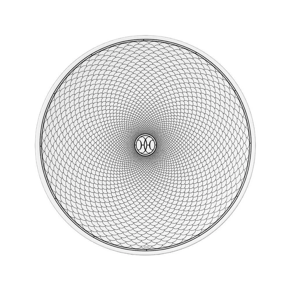 Hermes H Deco Piatto Piano I fregi in ferro battuto Art Deco, che decorano le boutique Hermès al numero 24 di Rue du Faubourg e al numero 17 di Rue de Sèvres, hanno ispirato H Déco, un servizio da tè in stile parigino. Il servizio reca le iniziali HH, attorno alle quali si sviluppa un motivo di spirali bianche e nere. Diametro: 26,5 cm Codice : 37001P Per tutti i prodotti Hermés non disponibili al momento dell'acquisto, si prega di considerare tempistiche di consegna dai 6 fino ad oltre i 12 mesi.