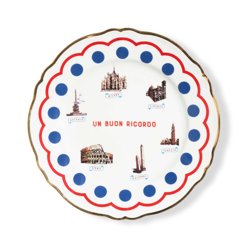 Piatto Piano 26.5 cm, Monumenti Buon Ricordo Bel02001 - Bitossi Home Dalle grafiche create da Sam Baron nasce "Un Buon Ricordo", una collezione che celebra l'Italia e il suo stile di vita raffinato, riconosciuto in tutto il mondo. Monumenti, paesaggi e simboli tipici del Belpaese illustrano e caratterizzano questa nuova e iconica serie di piatti. Piatto porcellana decalco bordo oro Adatto per lavastoviglie Max 250 lavaggi Non adatto per microonde Materiale: Porcellana Sku: BEL02001 SCOPRI TUTTA LA COLLEZIONE: Un Buon Ricordo, Bitossi Home