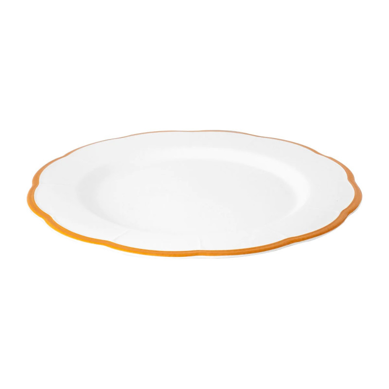 Piatto Piano 27.5 cm, Petalo - Bitossi Home Petalo è una collezione pensata per un uso quotidiano e per la ristorazione, componi il tuo servizio con piatti, tazze, insalatiere e piatti a servire sono di ceramica Ironston bianca con bordi smerlati colorati, scegli fra i 6 colori della collezione. Piatto Piano in Ceramica Ironstone bianca, con bordo smerlato colorato Adatto per lavastoviglie Adatto per microonde
