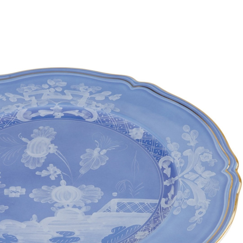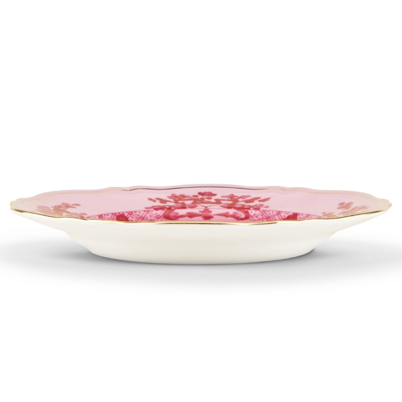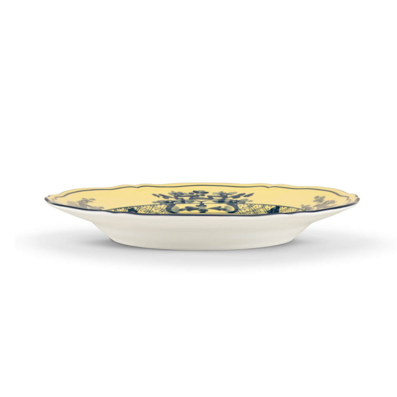 La collezione Oriente Italiano di Ginori 1735 è un trionfo di fiori esotici e colori vibranti. Combinando l'eleganza delle linee della collezione Antico Doccia con il delicato fascino del motivo Garofano, tipico delle ceramiche di Faenza, questo piatto in porcellana incarna un giardino immaginario orientale. Ogni pezzo è decorato a mano, unendo tradizione e raffinatezza. Perfetto per chi cerca eleganza sulla tavola.