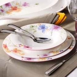 Il piatto gourmet Mariefleur di Villeroy & Boch esprime eleganza e creatività a tavola. Con il suo design raffinato e la forma rotonda in porcellana Premium, unisce funzionalità e stile in un’unica creazione. Grazie al diametro ampio da 30 cm, è perfetto per servire pietanze ricercate, presentazioni creative o portate principali, valorizzando ogni preparazione con un tocco esclusivo. Resistente e pratico, è lavabile in lavastoviglie e adatto al microonde, ideale per un uso quotidiano elegante o per le grandi occasioni.