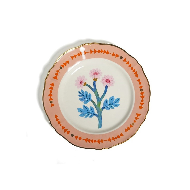 • PIATTO PIANO 26,5 CM, BOTANICA ROSA FILO ORO BOT101