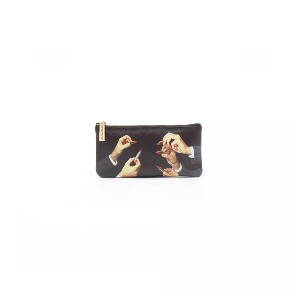 Astuccio Lipstick Black Design: TOILETPAPER Dimensioni: 21 x 9 cm Materiale: Esterno 100% PU, Imbottitura 100% Poliestere Codice: 02524