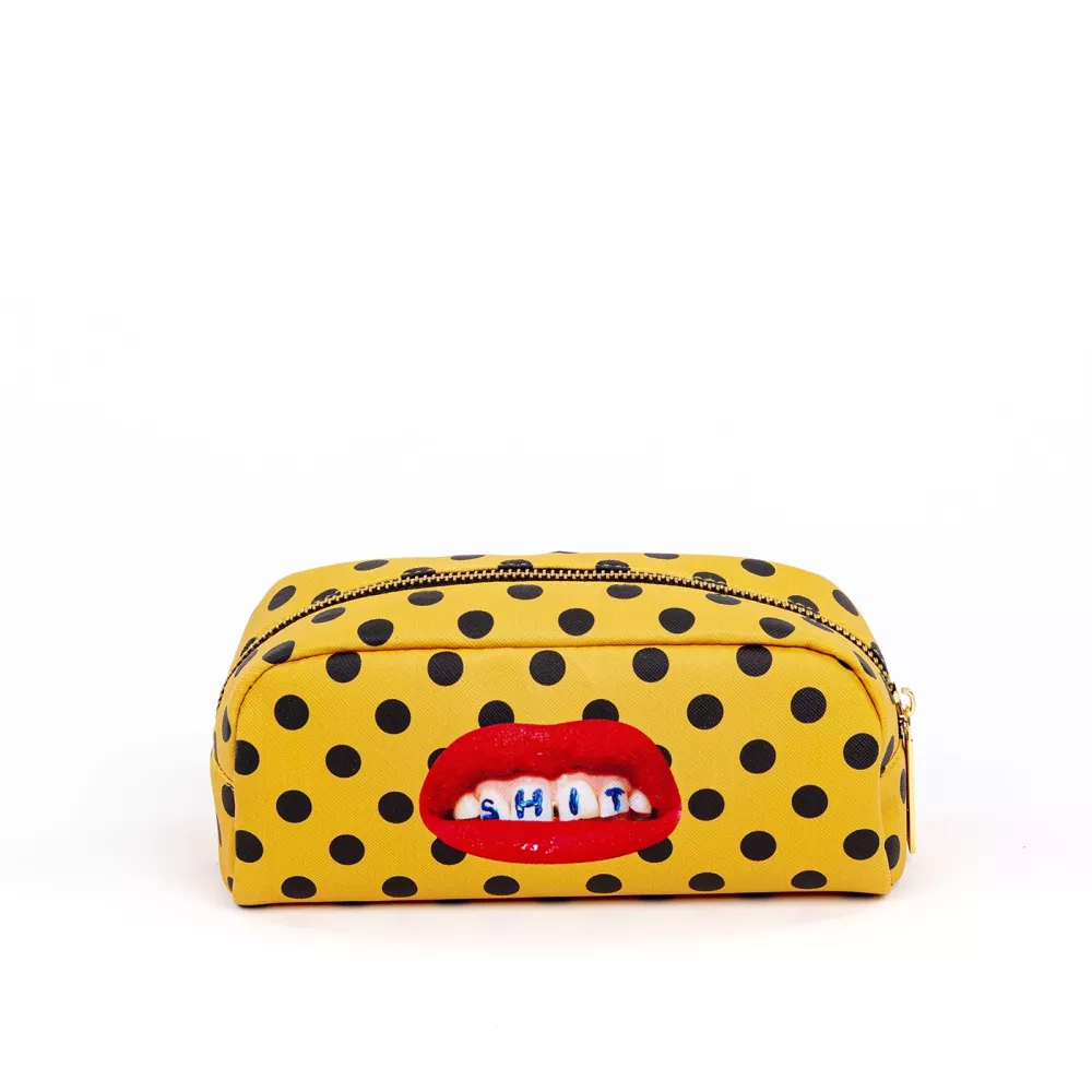 Astuccio super colorato, irriverente e versatile disegnato da Toiletpaper. Materiale: esterno 100% PU, fodera 100% poliestere Dimensioni: 20,5 cm x 7 x (h) 9 cm