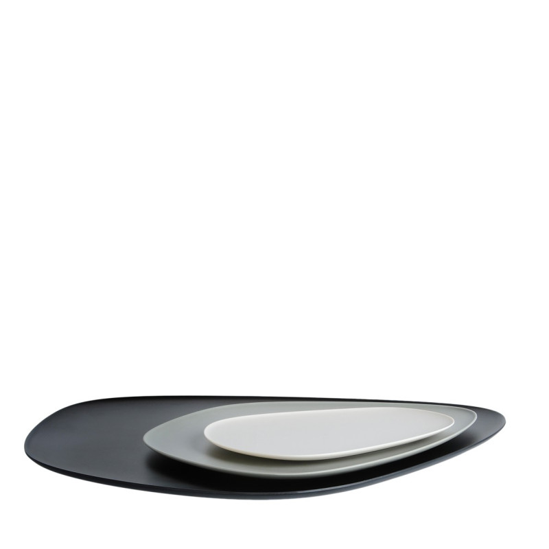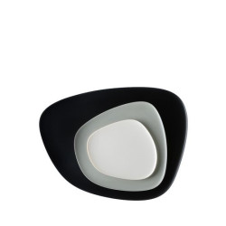 SET DI 3 VASSOI, "NAMASTE", 1236/CM - KARTELL Il set di 3 piatti/ vassoi di diverse dimensioni “Namaste” è caratterizzato da un design organico e asimmetrico che ricorda quello di sassi piatti e da una paletta cromatica molto naturale. I piatti possono essere abbinati in modo da creare gradevoli nuance ton-sur-ton o contrasti più decisi. Il vassoio grande è largo 45 cm lungo 36 cm e alto 2 cm, il medio è largo 27 cm lungo 26 cm e alto 1,4 cm e il piccolo è lungo 20 cm largo 19 cm e alto 1 cm. Materiale MELAMMINA Dimensioni Larghezza: 45 cm Profondità: 36 cm Altezza: 2 cm Peso unitario: 1.9 kg