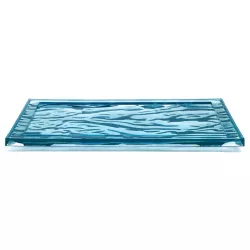 Il vassoio Dune, realizzato in cristallo, presenta una superficie che richiama il movimento ondulatorio del mare, le sinuose forme delle dune nel deserto e anche i delicati riflessi di un drappo di seta. La struttura del vassoio è realizzata in PMMA trasparente o colorato in massa. Non è ignifugo e può essere utilizzato all'aperto. Designer: Mario Bellini Dimensioni: - S: 46 x 32 cm; h 2,5 cm; kg 1,3 - M: 55 x 38 cm; h 3 cm; kg 2,3