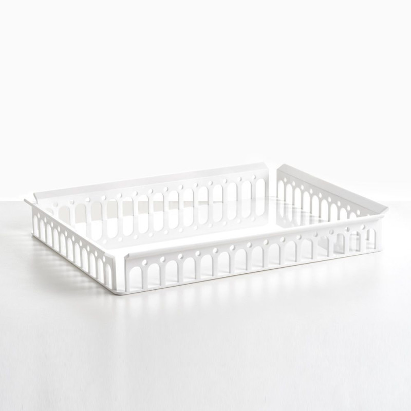 VASSOIO PIAZZA, 1441 - KARTELL Il Vassoio Piazza rappresenta una rivisitazione delle forme architettoniche di Lecce attraverso un design accattivante e originale. Il designer Fabio Novembre desidera rendere omaggio alla sua città natale con un oggetto che richiama l'idea di convivialità e di stare insieme. Piazza è un vassoio concepito per condividere momenti con amici e famiglia, proprio come spesso accade nella piazza di una città. Il vassoio presenta un linguaggio scultoreo e uno stile ispirato al patrimonio artistico di Lecce, caratterizzato da una sequenza di archi a tutto sesto. Materiale Struttura: Tecnopolimero Termoplastico Colorato in massa Ignifugo: Non Ignifugo Uso: Outdoor Altezza: 6 cm Larghezza: 48 cm Profondità: 37 cm