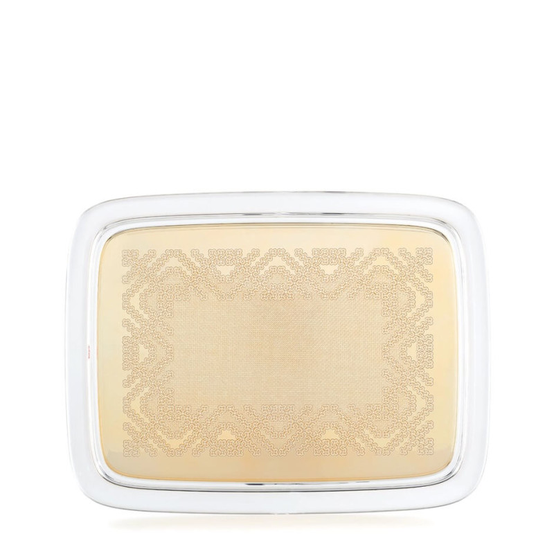 Vassoio Teatime Kartell Teatime, il nuovo vassoio di Philippe Starck, è un'opera di design che fonde ricami preziosi con l'atmosfera familiare dell'ora del tè. Questo vassoio è caratterizzato da dettagli ricamati che richiamano il passato, trasformando l'oggetto in un elemento di design discreto e familiare, perfetto per l'ora del tè in famiglia. Il nuovo vassoio Kartell gioca con i richiami ai trafori all’uncinetto applicati al nuovo materiale sostenibile, ad alto contenuto tecnologico. Dimensioni: 43,5 x 33 cm Peso: 1,3 kg