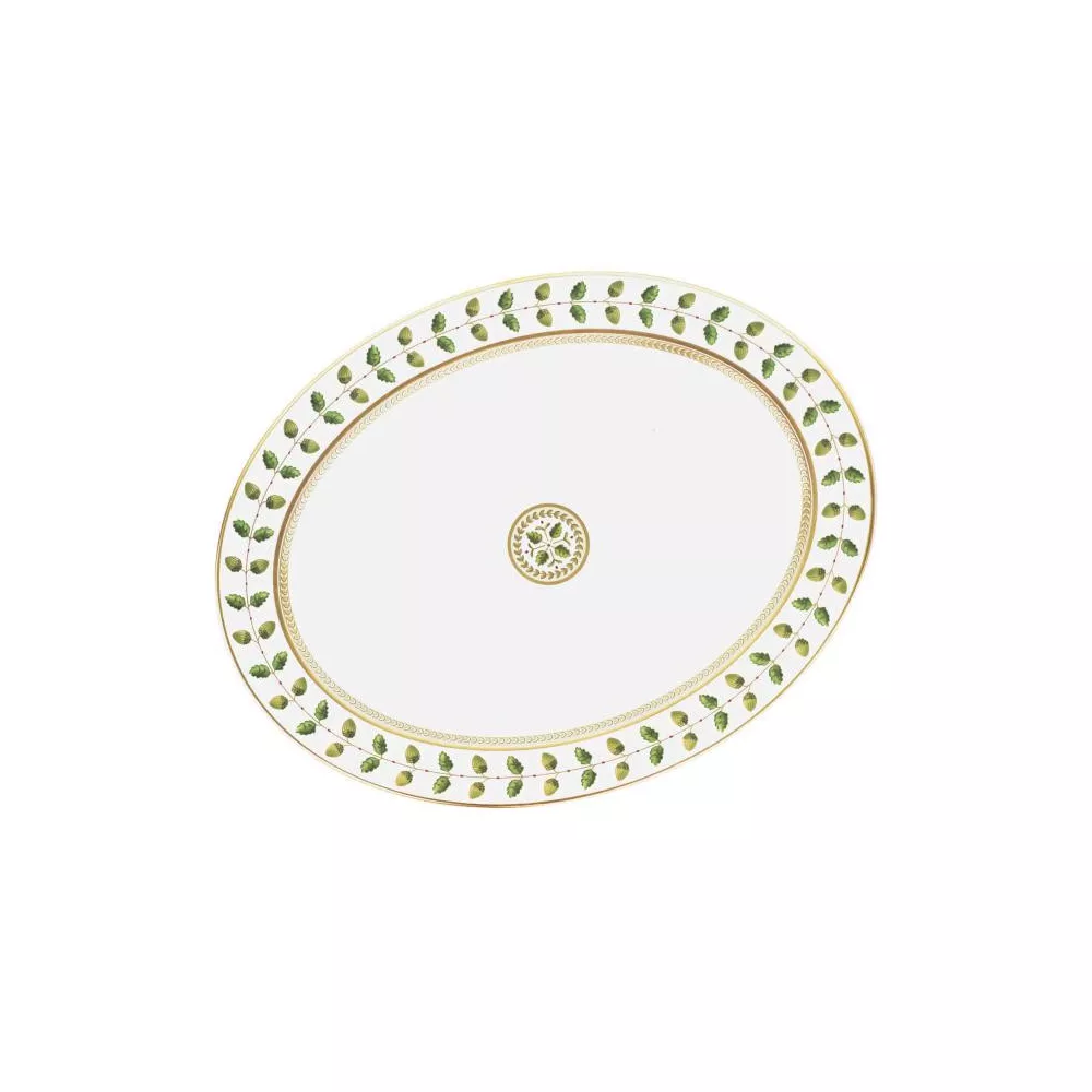 Vassoio ovale cm 38 -finiture oro -Costance offre tutta la raffinatezza dello stile Impero. Ghiande, quercia e foglie di alloro - i simboli di forza, longevità e pace.