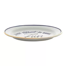 Il vassoio ovale Fun di Bitossi Home unisce ironia e design contemporaneo. Decorato con la frase “Just Want To Have Fun”, è perfetto per dare un tocco leggero e originale alla tavola o agli ambienti di casa. Realizzato in porcellana con decalco, è resistente fino a 250 lavaggi in lavastoviglie: pratico e divertente, perfetto anche come idea regalo.