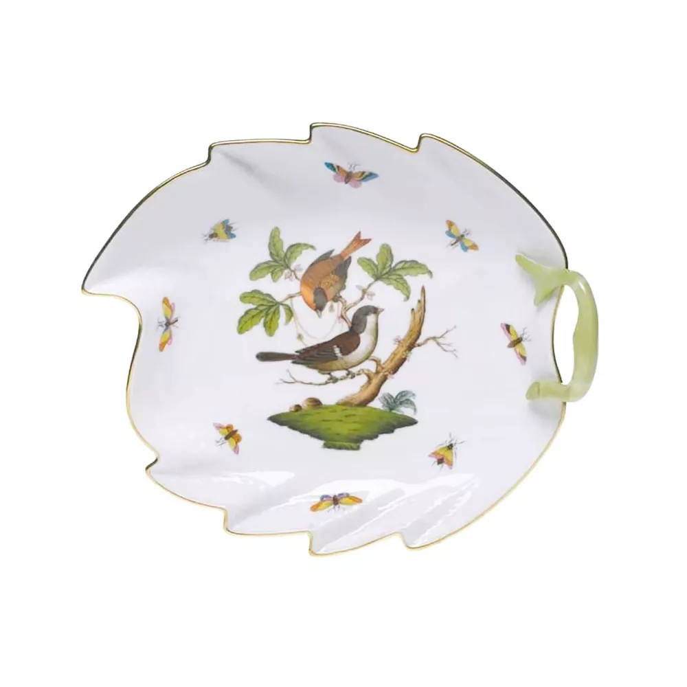 Rothschild Birds, uno dei decori Herend più conosciuti, prende il nome dall'importante famiglia baronale dei Rothschild ed ha come protagonisti due uccelli (sono raffigurate dodici diverse specie di uccelli appoggiati ad un ramo stilizzato). Il decoro si ispira a un racconto del XIX secolo sulla baronessa Rothschild, che perse dei preziosi di perle nel giardino della sua residenza viennese. Venne ritrovata diversi giorni dopo dal suo giardiniere che notò due uccellini giocarci su di un albero. Raviera 24 x 19,5 cm Materiale: porcellana con decorazioni in oro Codice: 1200/1201 Si consiglia il lavaggio a mano. Mai mettere nel microonde un articolo con finiture oro o platino.