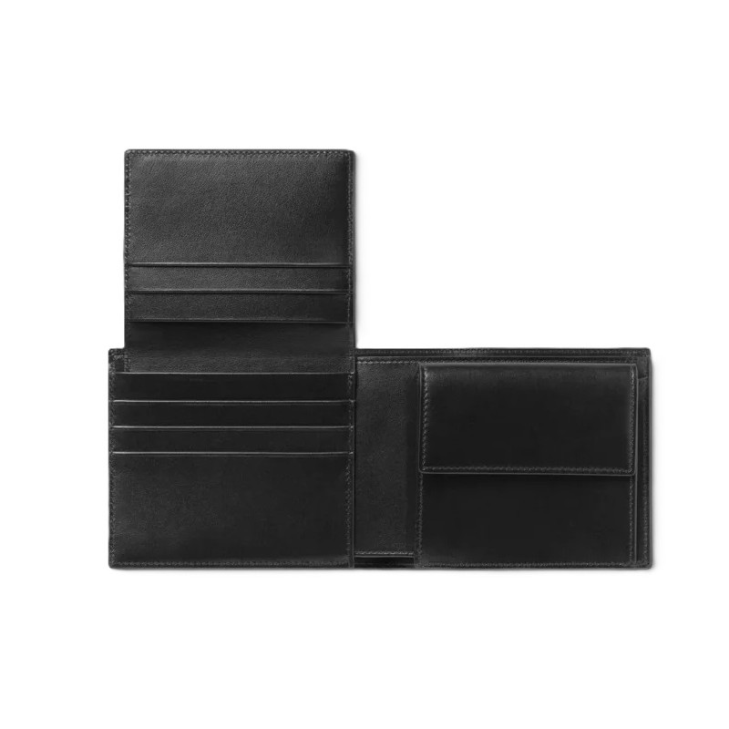 Realizzato in pelle liscia e foderato in tessuto nero, questo portafoglio Meisterstück può contenere fino a 10 carte di credito in speciali aperture, ma entra comunque comodamente nella tasca dei pantaloni o della giacca. Il sofisticato portafoglio presenta anche un portamonete con patta e due scomparti extra per banconote. Combinando funzionalità e stile, questo portafoglio è l'accessorio ideale per chi cerca eleganza e praticità quotidiana.