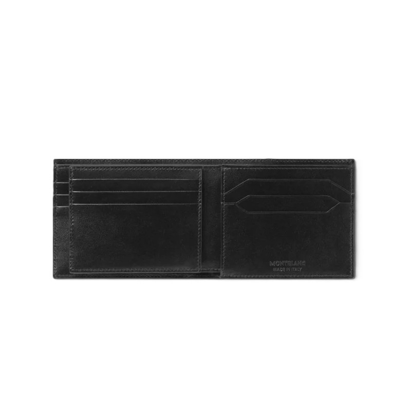 Progettato con stile e per la massima praticità, questo portafoglio Meisterstück dalle dimensioni generose offre 12 aperture per carte di credito, due scomparti per banconote e cinque tasche extra. Realizzato in pelle elegante, è foderato in tessuto nero ed è completato dall’emblema Montblanc.