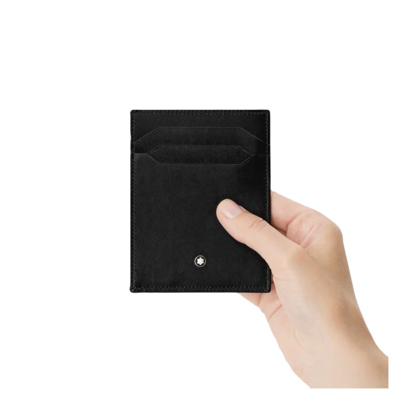 Il porta carte Meisterstück di Montblanc, realizzato in pelle liscia, combina il classico design del brand con la massima funzionalità. Foderato in tessuto nero, offre quattro aperture per carte di credito, tre tasche extra per banconote o ricevute e una tasca amovibile per accedere facilmente alle carte d’identità. L'emblema Montblanc completa l'eleganza dell'accessorio.