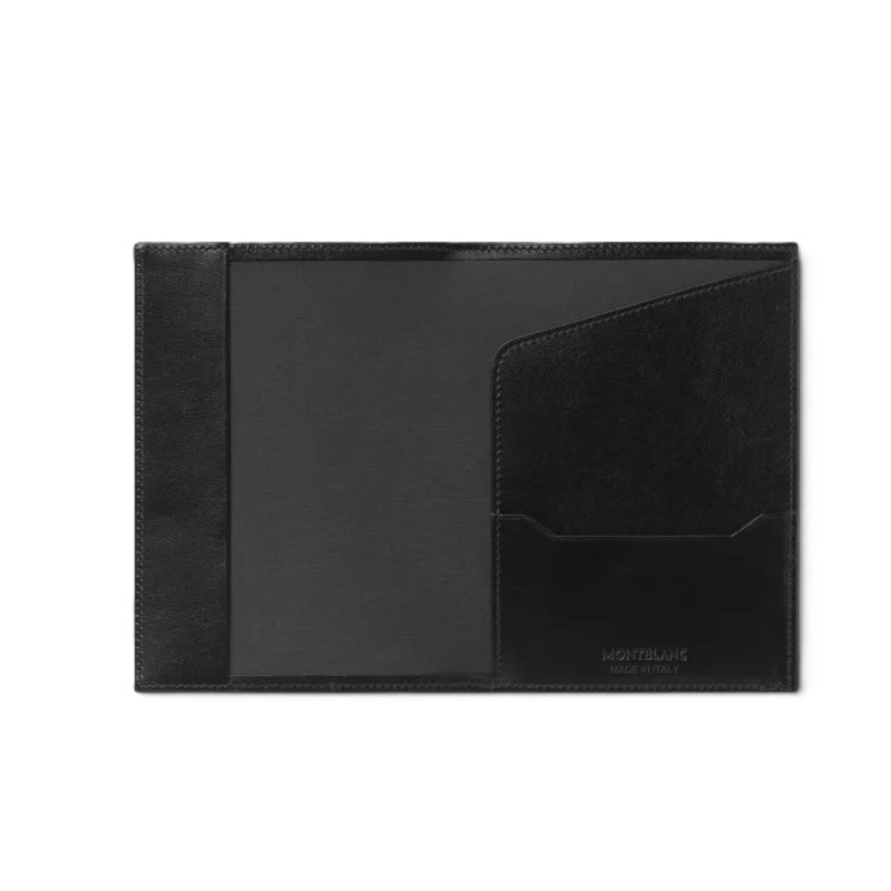 La custodia per passaporto Meisterstück di Montblanc, realizzata in pelle liscia e foderata in tessuto nero, è l'accessorio perfetto per viaggi d'affari o fughe di fine settimana. Adatta a tutti i passaporti internazionali, è dotata di una tasca aperta per un facile accesso e una piccola tasca extra per la carta d’imbarco, combinando praticità ed eleganza.