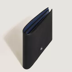 Il portafoglio Montblanc in pelle Meisterstuck esprime una raffinatezza discreta pensata per l uso quotidiano. Il design bi fold sottile ed elegante abbina un esterno nero senza tempo a un interno blu inchiostro a contrasto, segno distintivo della maestria artigianale della Maison. L organizzazione interna e studiata per garantire funzionalita e ordine, con spazi dedicati a carte, banconote e documenti essenziali. Completato dall emblema Montblanc sul fronte, questo portafoglio rappresenta un accessorio di alta pelletteria sobrio e distintivo, ideale anche come regalo perfetto.