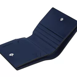 Il Portafoglio Compatto Meisterstuck di Montblanc interpreta l eleganza contemporanea attraverso la pregiata pelle Sartorial goffrata, arricchita da sofisticate finiture in metallo nero. Il contrasto tra esterno nero e interno blu inchiostro dona carattere e raffinatezza a un accessorio essenziale. Compatto ma funzionale, offre sei aperture per carte e pratiche tasche per contanti e ricevute. L anello laterale sul retro consente di agganciarlo a un gancio o a un cordoncino, per avere sempre con se gli oggetti indispensabili. Un accessorio iconico, pensato per chi desidera coniugare stile e praticita quotidiana.
