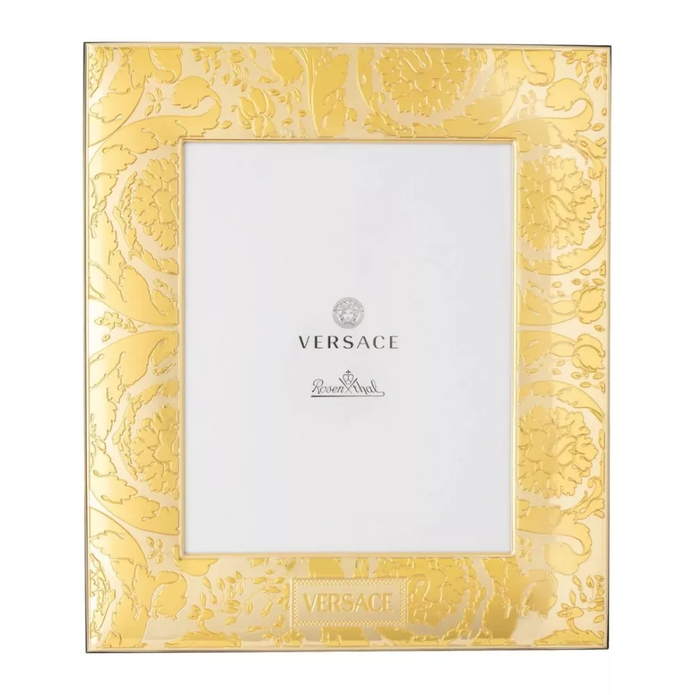 Il portafotografie Versace Frames VHF12 Gold unisce eleganza e lusso in un design rettangolare raffinato. Realizzato in argento bilaminato e arricchito dal decoro dorato VHF12, rappresenta una cornice esclusiva per custodire i tuoi ricordi più preziosi. Con le sue linee sofisticate e la qualità artigianale italiana, è perfetto per arricchire ambienti classici o contemporanei, esprimendo il prestigio intramontabile della Maison Versace.