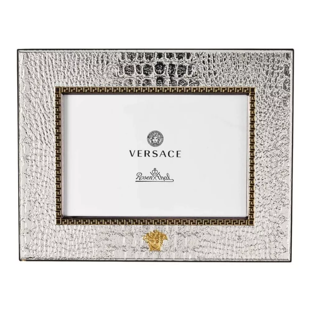 Un raffinato portafotografie in argento bilaminato firmato Versace, perfetto per esaltare ogni ricordo con eleganza. Appartenente alla collezione Versace Frames, questo modello rettangolare della linea VHF3 Silver combina un design sofisticato con la brillantezza dell’argento, diventando un elemento decorativo di grande pregio per ogni ambiente.