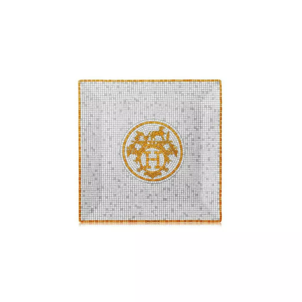 Hermes Mosaique au 24 Or Piatto Quadrato n. 3 Piattino quadrato in porcellana che sfoggia un design elegante e decorativo, grazie al mosaico impresso sulla porcellana, con fregi geometrici nei toni del grigio opaco messi in risalto dalla luce dell”ocra intenso.Tocchi di oro brillante esaltano il decoro. Dimensioni: diametro 15 x 15 cm Codice: 26043P Per tutti i prodotti Hermés non disponibili al momento dell'acquisto, si prega di considerare tempistiche di consegna dai 6 fino ad oltre i 12 mesi.