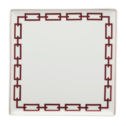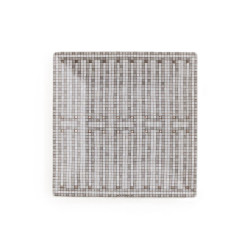 Hermes Mosaique au 24 Or Piatto Quadrato n. 4 Piattino quadrato in porcellana che sfoggia un design elegante e decorativo, grazie al mosaico impresso sulla porcellana, con fregi geometrici nei toni del grigio opaco messi in risalto dalla luce dell”ocra intenso.Tocchi di oro brillante esaltano il decoro. Dimensioni: diametro 19 x 19 cm Codice: 26044P Per tutti i prodotti Hermés non disponibili al momento dell'acquisto, si prega di considerare tempistiche di consegna dai 6 fino ad oltre i 12 mesi.