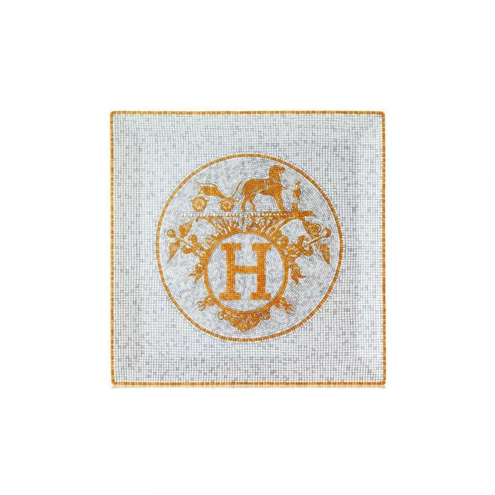 Hermes Mosaique au 24 Or Piatto Quadrato n. 5 Piattino quadrato in porcellana che sfoggia un design elegante e decorativo, grazie al mosaico impresso sulla porcellana, con fregi geometrici nei toni del grigio opaco messi in risalto dalla luce dell”ocra intenso.Tocchi di oro brillante esaltano il decoro. Dimensioni: diametro 23 x 23 cm Codice: 26045P Per tutti i prodotti Hermés non disponibili al momento dell'acquisto, si prega di considerare tempistiche di consegna dai 6 fino ad oltre i 12 mesi.