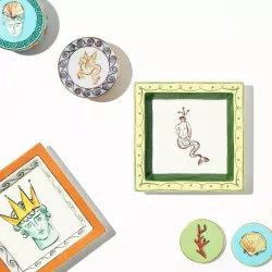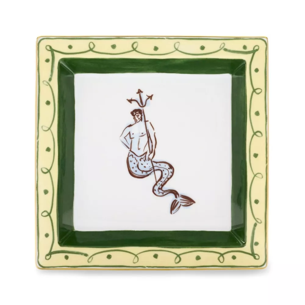 Un omaggio alla mitologia reinterpretata con spirito contemporaneo: questo svuotatasche in porcellana celebra la visione del designer Luke Edward Hall con un decoro intenso e suggestivo. La greca rossa incornicia un giovane Nettuno, simbolo del mondo marino, mentre la filettatura in oro zecchino aggiunge una luce preziosa. Perfetto come elemento decorativo o raffinato complemento da tavola, è un oggetto d'arte che racconta storie antiche con audacia moderna.