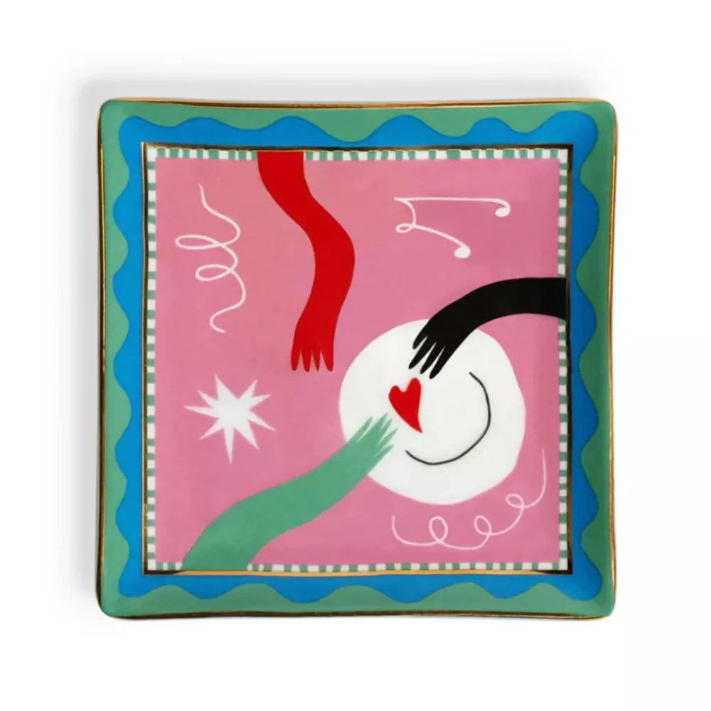 Lo svuotatasche quadrato di Bitossi è un elegante vassoietto in porcellana, impreziosito da un bordo dorato e decorato con raffinata decalcomania. Ideale per contenere piccoli oggetti con stile, unisce funzionalità e fascino decorativo.