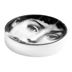 Parte della celebre serie Tema e Variazioni, questo posacenere rotondo Fornasetti è un raffinato esempio di arte applicata, dove realtà e immaginazione si incontrano in un decoro iconico. Realizzato in porcellana serigrafata e decorata a mano, può essere utilizzato anche come elegante svuotatasche. Ogni pezzo, frutto della lavorazione artigianale, è unico e irripetibile.
