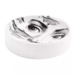 Parte della celebre serie Tema e Variazioni, questo posacenere in porcellana decorata a mano reinterpreta i lineamenti iconici di Lina Cavalieri con l’inconfondibile ironia e creatività di Fornasetti. Un oggetto quotidiano che si trasforma in un pezzo da collezione, capace di unire arte e funzionalità. Ogni esemplare, frutto della lavorazione artigianale, è unico e irripetibile.
