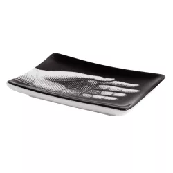 Il simbolo della mano, ricorrente nell’universo creativo di Fornasetti, decora questo raffinato posacenere in porcellana decorata a mano. Trasformato in un oggetto d’arte, può essere utilizzato anche come vuotatasche, aggiungendo un tocco di eleganza e originalità a qualsiasi ambiente.