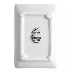 Realtà e illusione si incontrano in questo posacenere Fornasetti, dove l’eleganza delle antiche chiavi dorate dialoga con la rigorosa geometria in bianco e nero. Serigrafato a mano in porcellana, appartiene alla collezione Antichità Contemporanea, presentata in occasione della Milan Design Week 2021. Ogni esemplare è un pezzo unico e le eventuali variazioni testimoniano la maestria della lavorazione artigianale.