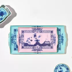 Il vassoio rettangolare Azalea della collezione Oriente Italiano di Ginori interpreta l arte dell ospitalita attraverso una porcellana finemente decorata, impreziosita da motivi floreali e da una raffinata filettatura dorata. I manici dal delicato colore rosa ne esaltano l eleganza formale, rendendolo protagonista di mise en place ricercate e sempre originali. Versatile e scenografico, si presta al servizio di caffetteria, antipasti, dolci, frutta o formaggi, ma anche come base decorativa per candele, fiori o oggetti d arte. Custodito in un esclusiva confezione regalo, si afferma come regalo perfetto per occasioni speciali e celebrazioni importanti, espressione dell incontro armonioso tra tradizione manifatturiera e suggestioni orientali.