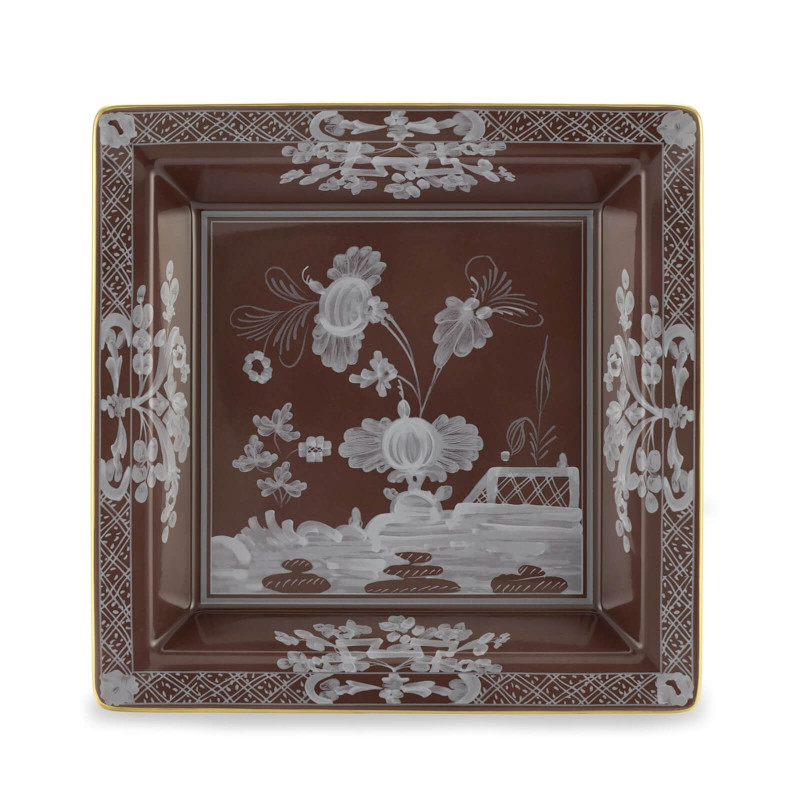 Ideale per matrimoni o comunioni, lo svuotatasche quadrato da 24,5 cm della collezione Oriente Italiano di Richard Ginori, in porcellana decorata a mano, aggiunge un tocco di eleganza esotica.