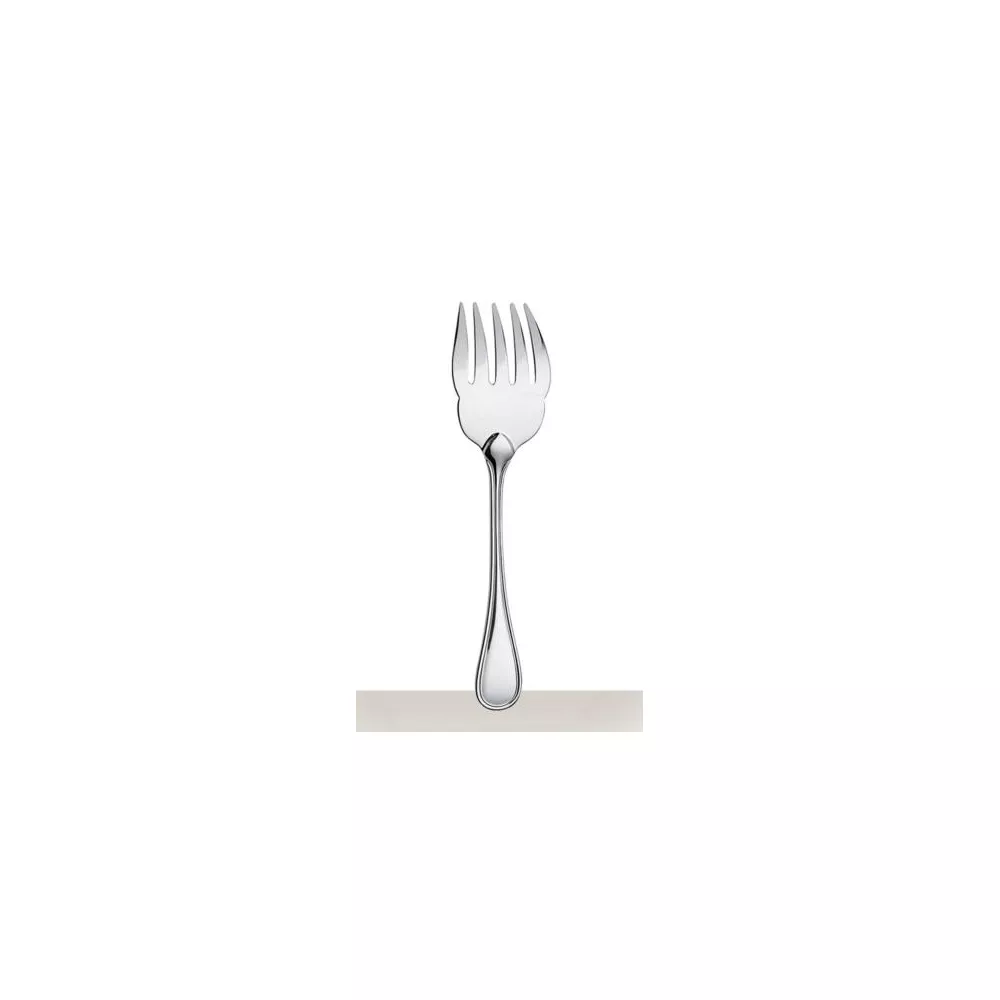 Forchetta per servire pesce Christofle Albi La forchetta per servire pesce in lega argentata nel modello Albi può essere utilizzata in combinazione con un coltello da pesce per separare facilmente la carne dalle lische di pesce per servirla. La linea Albi, creata nel 1968, trae ispirazione da una città francese situata tra Tolosa e Bordeaux e la sua famosa cattedrale nota per la sua straordinaria architettura, le linee rette pulite e l'unica navata. Lanciata nel 1967, questa posata è stata ispirata dalle linee diritte e pure della cattedrale di Albi, in Francia. MATERIALE • Lega argentata DIMENSIONI •: 22 cm