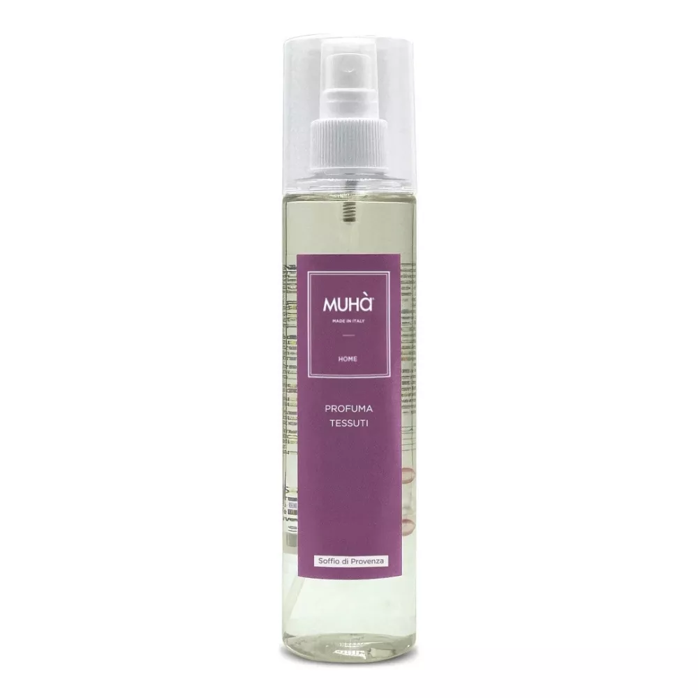 Lo Spray Tessuti Soffio di Provenza di Muha avvolge i tessili in una fragranza luminosa che richiama i campi estivi del sud della Francia. Le note di bergamotto e lavanda si intrecciano con delicati fiori viola, sprigionando una sensazione di freschezza elegante e naturale. Il cuore si arricchisce di sfumature legnose e leggermente pungenti di patchouly e muschio di quercia, mentre un tenue fondo d incenso dona profondita e carattere. Ideale per rinnovare tende, divani e tessuti con una scia raffinata e persistente.