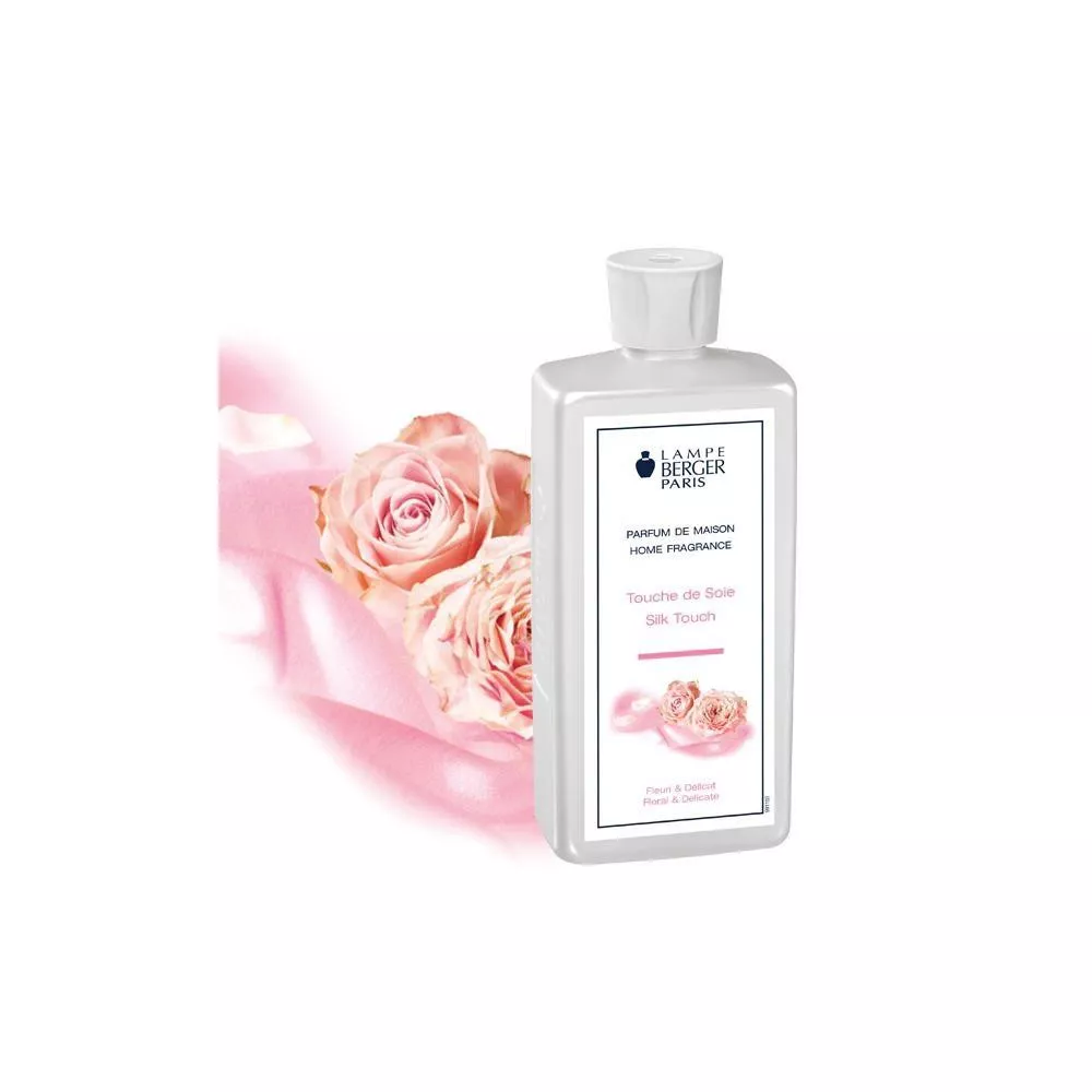 Lampe Berger - Touche de Soie 500ml Un profumo fiorito e delicato. Con note di melone e note verdi in testa, petali di rosa, ciclamino e violetta nel cuore e cioccolato e fave tonka in coda.