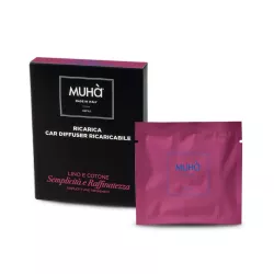 La ricarica per profumatore auto Lino e Cotone firmata Muha e studiata per garantire un rilascio graduale e duraturo di una fragranza intensa e raffinata. Compatibile con il diffusore auto in ecopelle lucida dal design moderno, rinnova l abitacolo con un profumo ispirato alla sensazione di pulito. Lino e Cotone intreccia note di alghe marine, petali di rosa, lavanda, sandalo e muschi di quercia, evocando bianche lenzuola scaldate dal sole e asciugate al vento. Un essenza elegante e il regalo perfetto per chi ama viaggiare avvolto da freschezza e armonia.