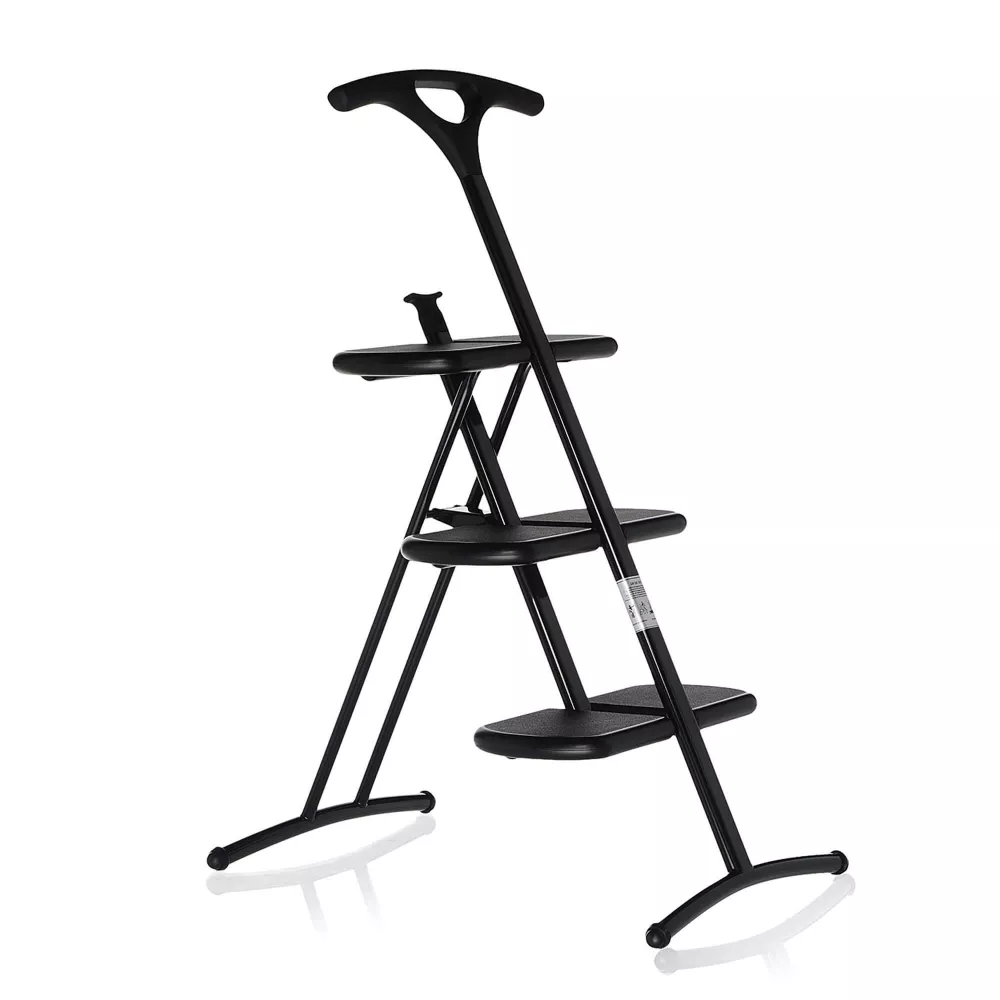 SCALETTA TIRAMISU, 7000 - KARTELL Una pratica scala pieghevole a tre gradini con una superficie antiscivolo. Tiramisù mette in risalto la leggerezza del suo design nella struttura portante: le barre curve forniscono stabilità sul pavimento e nella maniglia si trova non solo un solido punto di appoggio durante l'uso, ma anche uno strumento funzionale pratico una volta terminato - grazie al suo design, infatti, è possibile appenderla al muro. Materiale Struttura: Acciaio Verniciato Materiale Gradini: Polipropilene Caricato Vetro Ignifugo: Non Ignifugo Uso: Indoor Altezza: 92 cm Larghezza: 43 cm Profondità: 60 cm