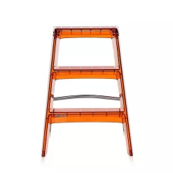 SCALA UPPER, 7030 - KARTELL Scala Upper di Kartell creata da Alberto Meda e Paolo Rizzatto Una scala con una forte personalità e un'elevata funzionalità. Rappresenta una perfetta fusione tra forma e funzione. La sua praticità è garantita grazie alla tecnologia innovativa utilizzata da Kartell, che ha plasmato il policarbonato conferendogli la resistenza, la robustezza e la durezza necessarie per una scala. La struttura in metallo è solida e saldata al corpo trasparente, lucido e cristallino del policarbonato. I gradini sono antiscivolo, offrendo praticità e sicurezza. Questo oggetto non solo è estremamente funzionale e pratico, ma è anche bello e può essere utilizzato come elemento decorativo. Materiale: Acciaio cromato Policarbonato trasparente o colorato in massa Dimensioni Larghezza: 46 cm Profondità: 58 cm Altezza: 60 cm Peso unitario: 4.5 kg