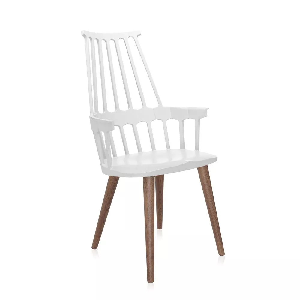 Comback è caratterizzata da una spalliera costituita da una struttura a sette denti, che si allarga verso il poggiareni, rinforzato da un bordo di tenuta ad esagoni, e si unisce al sedile tramite esiti fusti verticali a raggiera. Generosa nelle dimensioni, la seduta monoscocca unisce funzionalità ed ergonomia ad un alto tasso di emozionalità e memoria. Comback è disponibile nelle versioni "girevole", con quattro razze con tubo centrale girevole, e "slitta", con due sottili tubolari laterali. Materiale Struttura: Frassino Tinto Rovere O Faggio Laccato Materiale Seduta: Tecnopolimero Termoplastico Colorato In Massa Ignifugo: Non Ignifugo Uso: Indoor Altezza: 99 cm Larghezza: 58 cm Profondità: 59 cm Altezza Seduta: 46 cm