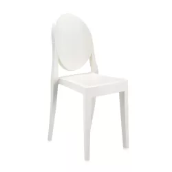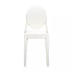La sedia Kartell Victoria Ghost, progettata da Philippe Starck, nasce da linee classiche, con uno schienale arrotondato che richiama la forma dei medaglioni antichi, e una seduta lineare e geometrica. Realizzata in policarbonato trasparente o colorato, questa sedia è prodotta in un unico stampo ad iniezione. È stabile, confortevole, resistente agli urti e agli agenti atmosferici. Ancora una volta, Kartell dimostra il suo know-how tecnologico attraverso la creazione di oggetti che hanno reso il marchio famoso in tutto il mondo. La sedia Victoria Ghost è un prodotto di grande carisma e personalità, in grado di inserirsi con eleganza in qualsiasi tipo di ambiente.