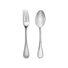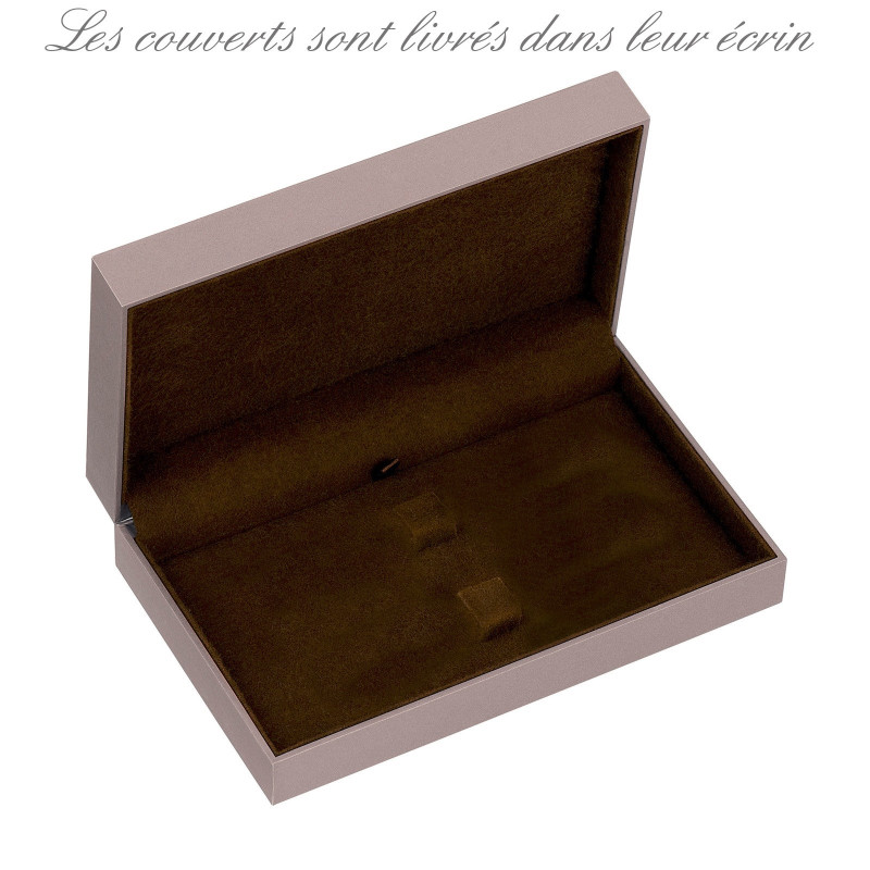 Set posate due pezzi in argento placcato Christofle Questo set di posate in lega argentata include una forchetta e un cucchiaio nel modello Albi, che deriva il suo nome e il suo aspetto da una famosa cattedrale francese nota per la sua notevole architettura e le linee rette. Può essere inciso con il nome del bambino, le iniziali o la data di nascita. Lanciata nel 1967, questa posata è stata ispirata dalle linee diritte e pure della cattedrale di Albi, in Francia. MATERIALE • Lega argentata DIMENSIONI • Lunghezza: 17 cm