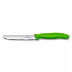 Coltello per verdure con filo ondulato ultra affilato Affronta la buccia del pomodoro, mostra a quell’anguria chi comanda. Non c’è frutta né verdura che possa resistere all’affilatissimo filo ondulato del nostro coltello per verdure. E grazie all’impugnatura ergonomica e alla dimensione perfetta, potresti usarlo anche per tagliare qualsiasi altra cosa in cucina. Dimensioni: L 22,0 x h 2,4 cm Peso: 28 g Forgiato: N. Tipo Di Bordo: Filo ondulato Lunghezza Della Lama: 11 cm Materiale: Polipropilene (PP) Colore: Nero Adatto Alla Lavastoviglie: Si