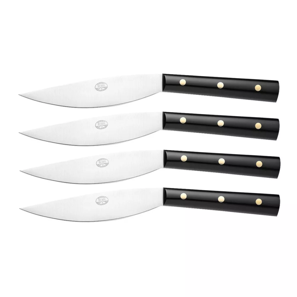 Descrizione: Confezione di 4 coltelli da bistecca con manico in plastica nera
