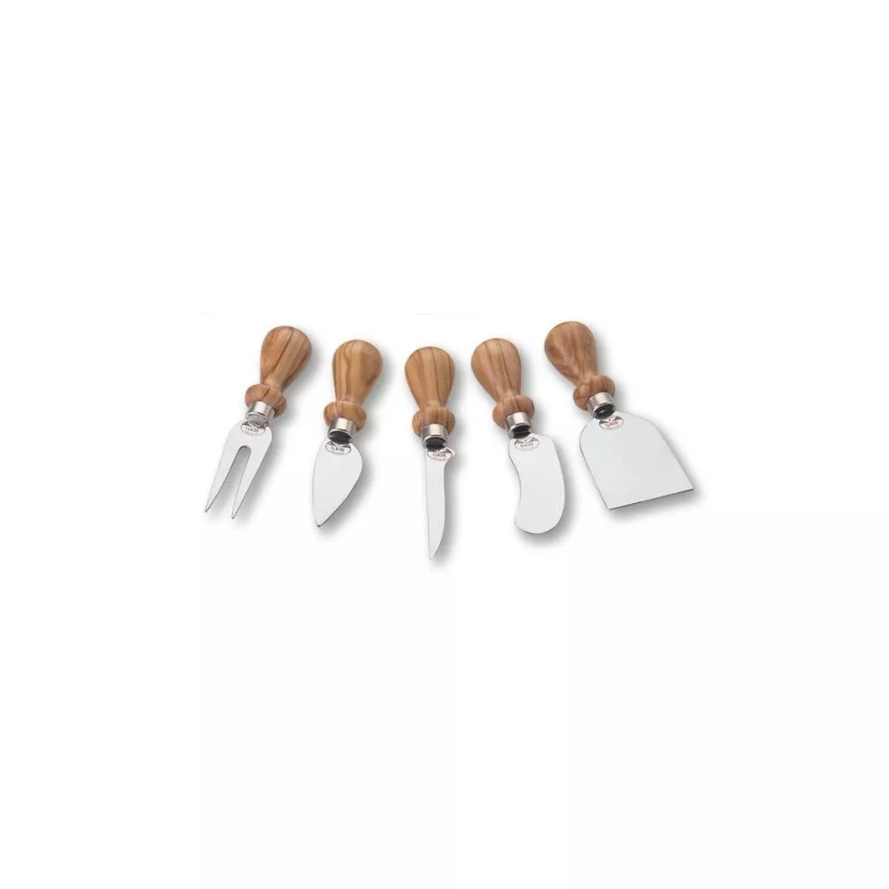Il set di 5 pezzi per formaggio "Piccoli Italiani" Berti con manico in legno di ulivo è perfetto per servire e degustare diversi tipi di formaggi. Ogni coltello è progettato per tagliare specifiche varietà di formaggi, offrendo precisione e facilità d'uso. Il manico in legno di ulivo, oltre a garantire una presa comoda, aggiunge un tocco di eleganza e naturalezza. Ogni pezzo è realizzato a mano in Italia, simbolo dell'eccellenza artigianale Berti.