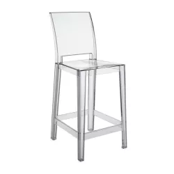 Lo sgabello One More Please di Philippe Starck interpreta la leggerezza e la brillantezza del policarbonato trasparente con una silhouette slanciata e versatile, ideale per ambienti indoor e outdoor. Il colore cristallo esalta la purezza delle linee e dona luminosita all’ambiente, mentre l’altezza regolata per il bancone garantisce comfort e stabilita. Un pezzo iconico del design contemporaneo, perfetto per completare spazi moderni con un tocco di eleganza essenziale.
