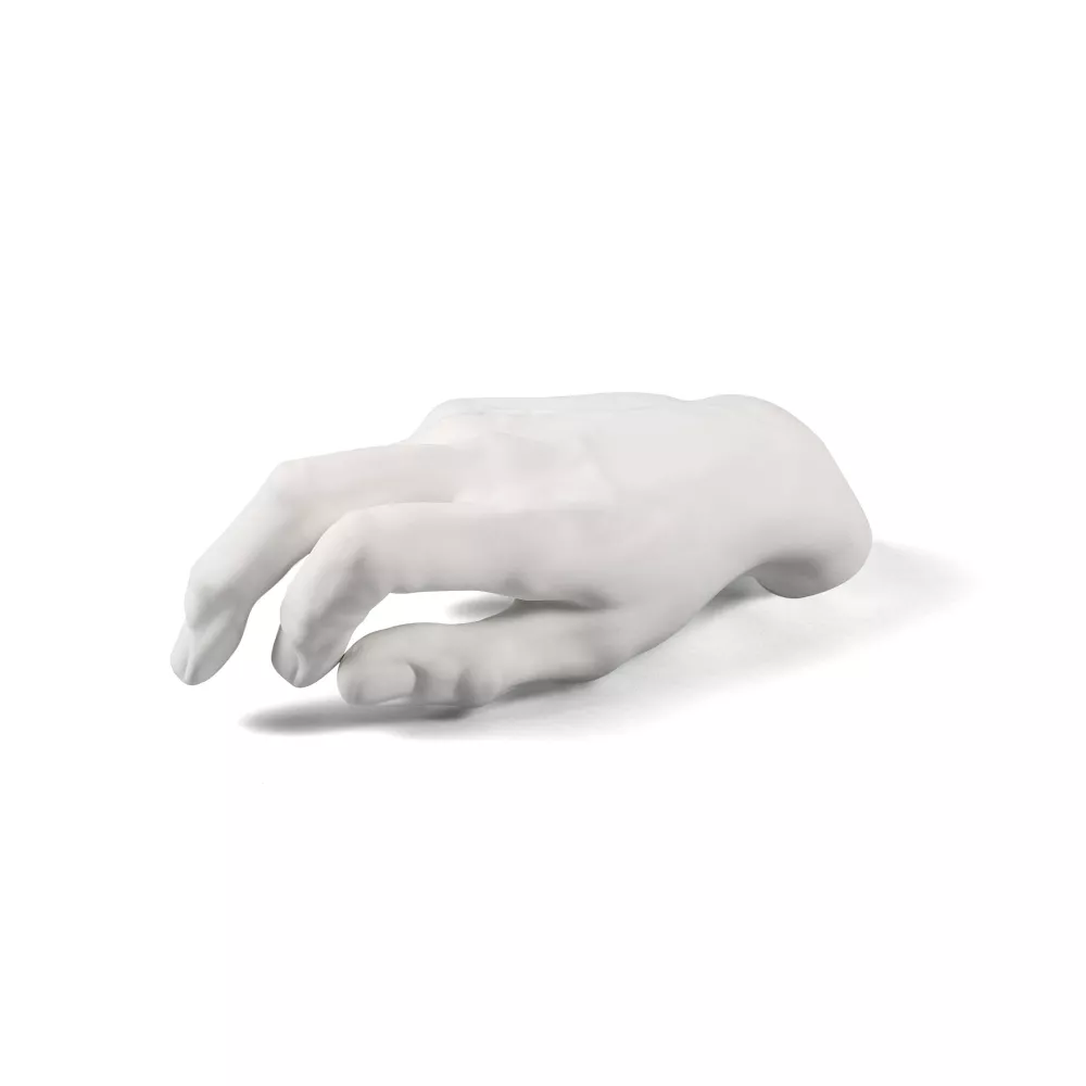 Nove parti del corpo umano ispirate al lavoro dei migliori scultori classici italiani. Mano maschile Design: Marcantonio Materiale: porcellana Dimensioni: cm 32,5 x 15 h. 11