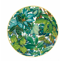 Un omaggio alle foglie che proteggono la terra, ai colori che nascono dal cielo. Alla potenza della flora, alla sua passione, al suo estro, alle sue foglie nel cui fruscio risuona la parola Passifolia. Piatto segnaposto in porcellana di Limoges Decorazioni cromolitografiche Fabbricato in Francia Diametro: 32 cm Per tutti i prodotti Hermés non disponibili al momento dell'acquisto, si prega di considerare tempistiche di consegna dai 6 fino ad oltre i 12 mesi.
