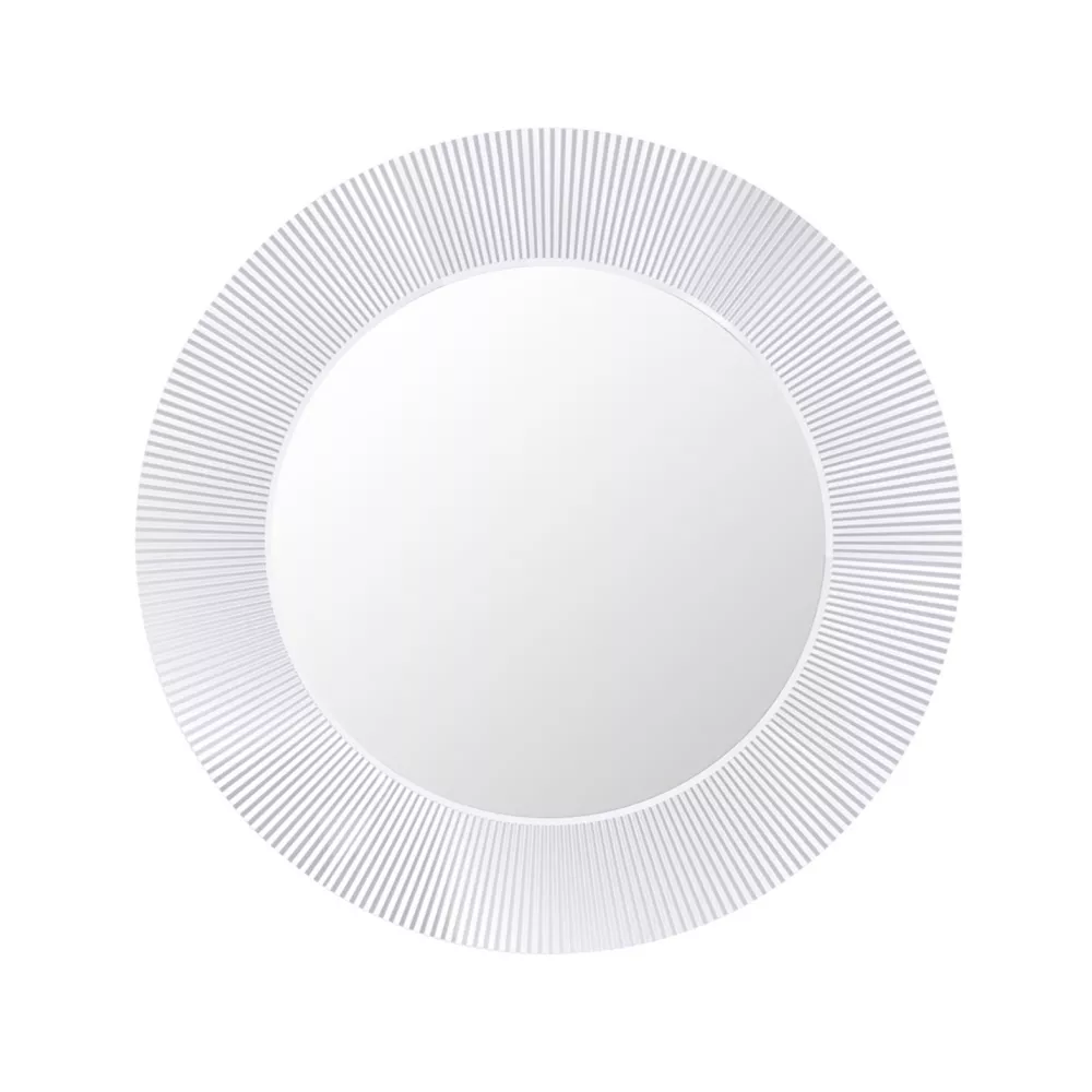 Specchio rotondo con cornice trasparente, dal particolare effetto plissettato. Materiale Struttura: Pmma Trasparente O Colorato In Massa Materiale Terzo: Specchio Ignifugo: Non Ignifugo Uso: Indoor Dimensioni: Profondità 4 cm, Ø 78 cm